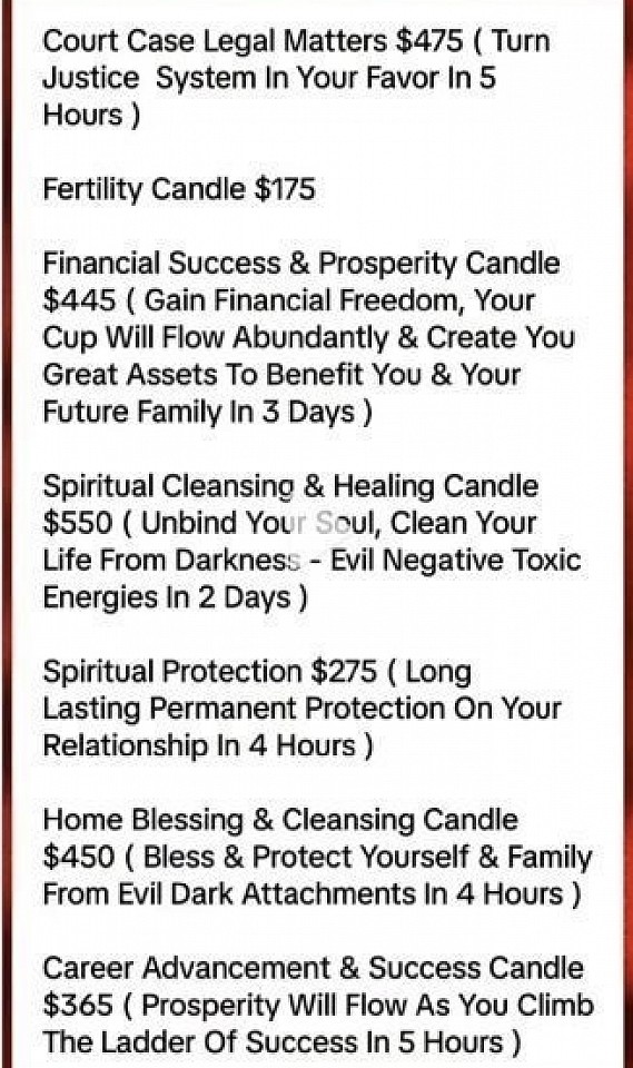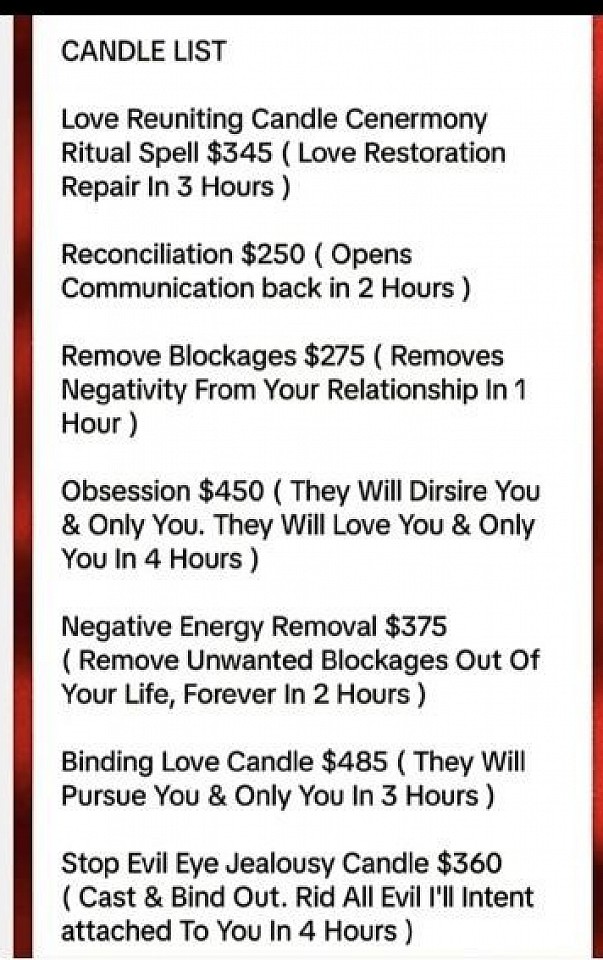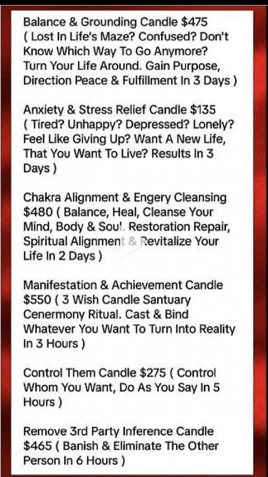 Psychic Malina's Menfestion Candles Are very unique and exstreamly powerful for clients to receive immediate long lasting results