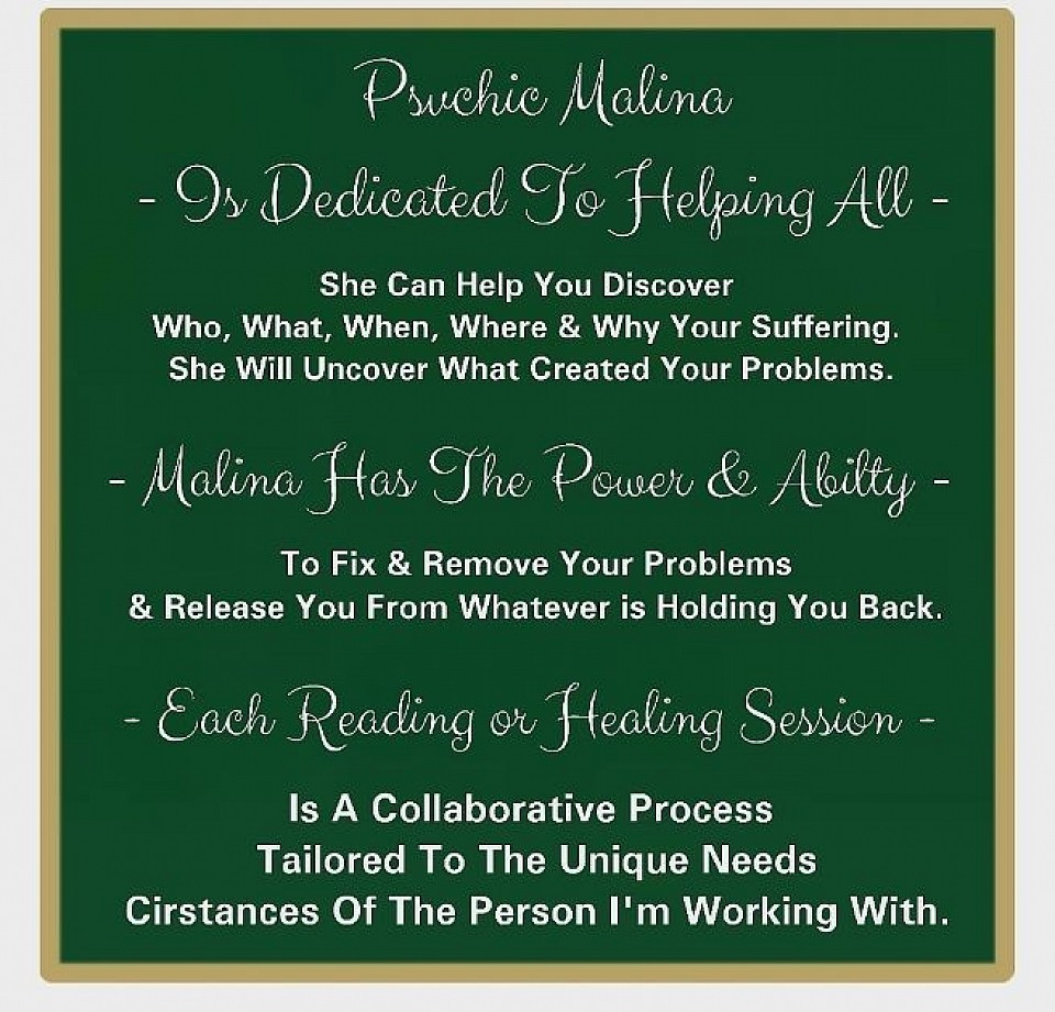 Malina Could Make All Your Dreams Come True With Just One Phone Call - Manifest your dreams into reality - Malina Is Ready Assist You Today To Make All Your Hearts Desires possible! She can help you turn your deepest desires, hopes & dreams into reality.